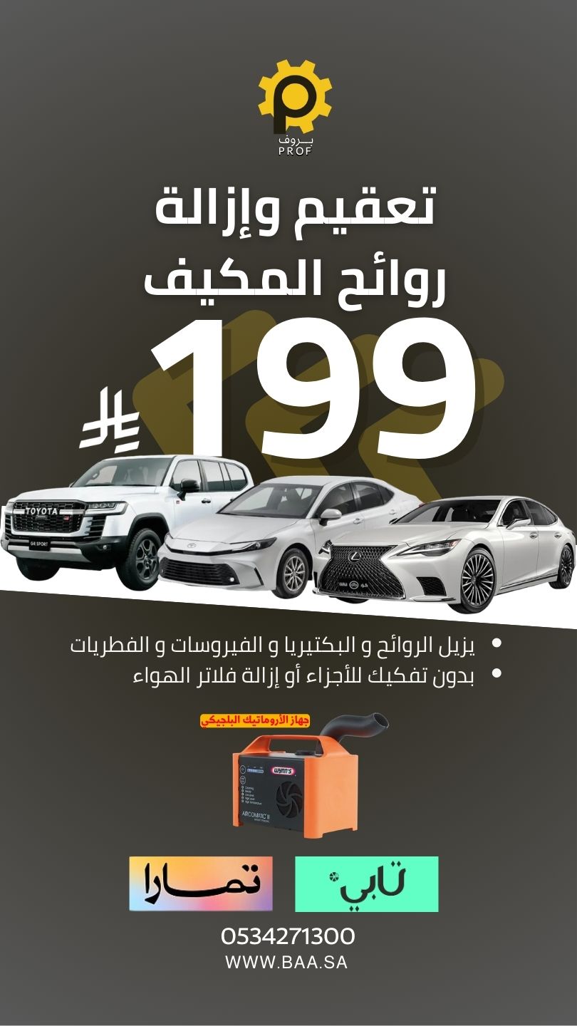 نقدم لك خدمة تعقيم وتنظيف نظام المكيف بالكامل باستخدام جهاز متخصص يزيل الروائح والبكتيريا والفيروسات والفطريات من داخل النظام، بدون فك أي قطعة أو إزالة فلتر الهواء.