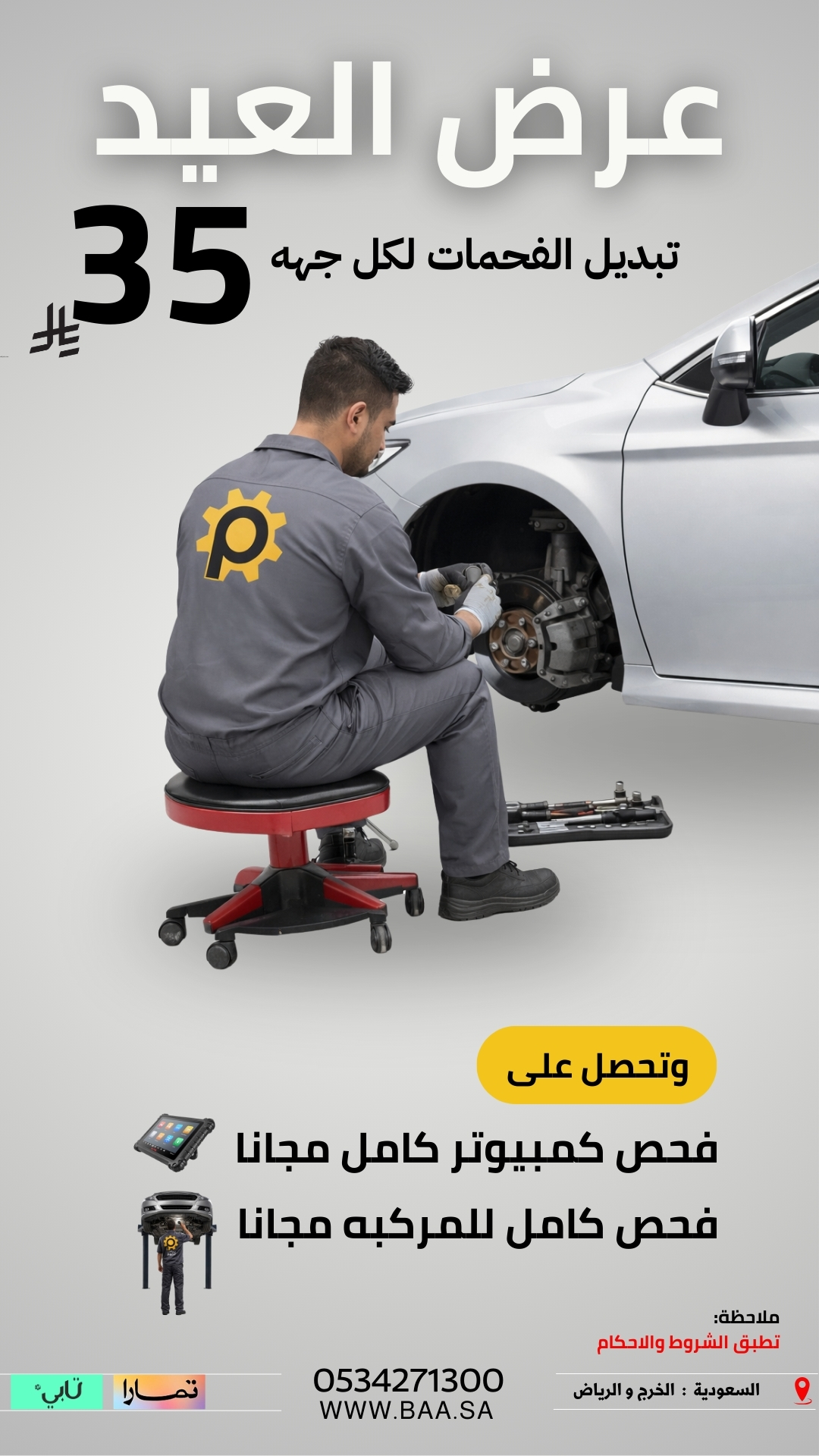 بمناسبة العيد، يقدم مركز بروف لخدمات السيارات عرضًا خاصًا على تبديل فحمات الفرامل لكل جهة بسعر 35 ريال فقط.